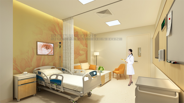 考虑到了医护人员的使用需求,采用集成式家具,便于空间收纳和管理。