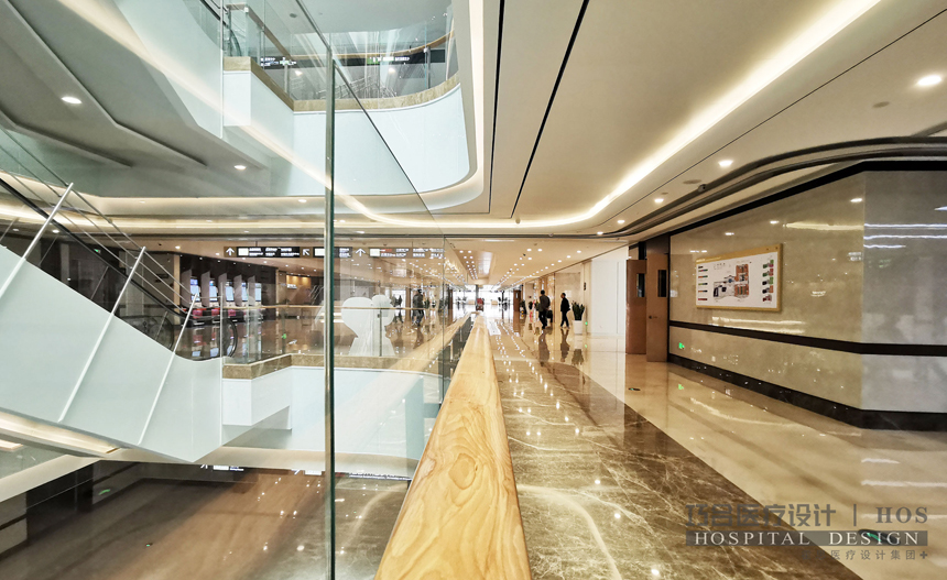 医院采用了厅廊结合的功能布局,经由接待大厅往里走,就是医疗街了。各楼层以医疗街为轴心,划分成A、B、C、D4个区域,是不是简单又好记?