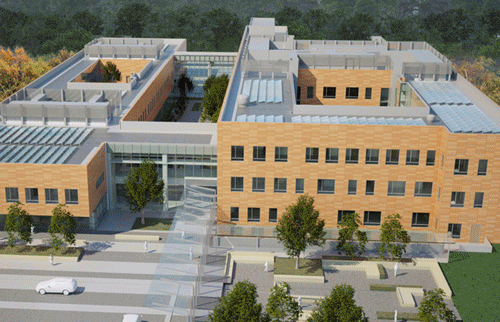 医院的两栋大楼通过连廊衔接: