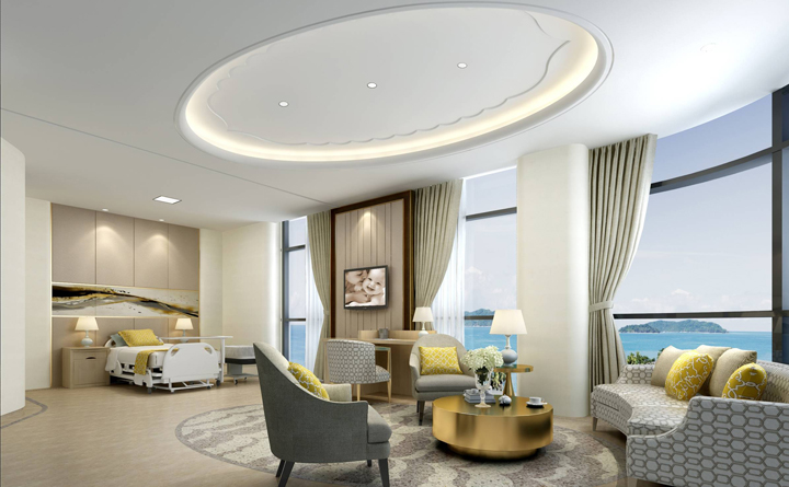 9、VIP病房不能设置过多、过大,建议以60-80㎡左右为宜。